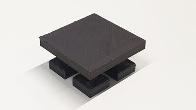 Für Quedex wird aus der Multiplexplatte eine Basis ausgesägt und aus dem Sperrholz ein Rahmen, der darauf geklebt wird, damit ein Weg mit Feldern entsteht. Dazu werden 13 Blöcke gebaut, die durch diesen Weg durchgeschoben werden. 6 von den Blöcken zeigen eine 0, weitere 6 Blöcke zeigen eine 1 und der letzte Block visualisiert Caro. Damit die Blöcke aus dem Rahmen herausragen, werden die Größen des Blockes doppelt aus dem Sperrholz ausgesägt. Dann werden zwei 5mm dicke Blöcke zu einem 1cm dicken Block geklebt.