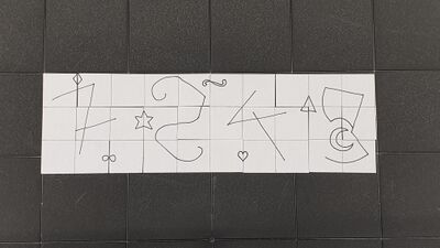 Für R.G.B. wird nur eine Basis Platte aus Sperrholz gesägt, worauf die drei Potentiometer, ein Button und das RGB-LED platziert werden können. Des Weiteren wurden für das Rätsel in Illustrator 18 Symbole gezeichnet, wo alle Symbole unterschiedliche Farben haben. Diese Farben wurden dann mit einem bestimmten Anteil von RGB eingestellt, die für das Rätsel angepasst werden.