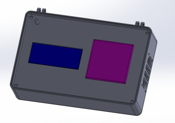 In der geschlossenen Darstellung können nur die Ausschnitte von dem Lautsprecher an der Seitenwand, für die Ladebuchse und die Anschlüsse der Elektronik gesehen werden. Die Ausschnitte der USB Buchse für den ESP32 und der SD-Karte für den MP3-Player ermöglichen einen Programmierung im geschlossenen Zustand.