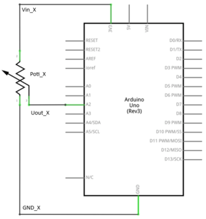 Abbildung 3 Anschluss eines Potis an einen Arduino https://elektro.turanis.de/html/prj031/index.html