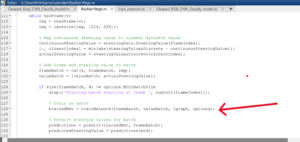 This task was about loading the pretrained NN with MATLAB® App (GUI) by clicking the desired path in the images. This method is the same method used in JupyterLab, but alternatively, since I already have steering angles with their corresponding frames, we can train a model to predict a steering angle based on new frames.