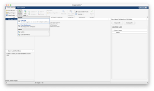 [Hier Bild von (Export->Labels->To File) erklärung] Nach Abschluss der Labeling-Prozedur ist es entscheidend, die Labels als .mat-Datei zu exportieren(Export->Labels->To File). Diese Datei ermöglicht es, bei zukünftigen Projekten die Klassendefinitionen direkt zu importieren, wodurch Redundanzen vermieden werden. Bei der Arbeit mit mehreren individuellen Projekten, die später zusammengeführt werden sollen, ist darauf zu achten, dass die Klassennamen exakt übereinstimmen. Unterschiede in der Farbzuordnung stellen kein Problem dar, da der Image Labler diese automatisch angleicht.