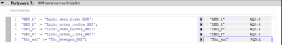 Die Abbildung stellt die verwendeten Variablen dar. Diese Variablen verknüpfen interne SPS-Signale wie Sensorwerte, Schaltzustände oder Stellgrößen mit der Visualisierung. Dadurch können Prozessdaten auf dem HMI angezeigt werden, ohne direkt in die Steuerungslogik eingreifen zu müssen.
