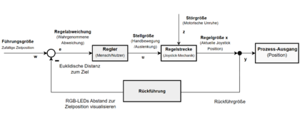 Die Stellgröße ist somit die manuelle Bewegung der Joysticks durch den Nutzer, mit der versucht wird, die Regelabweichung zu minimieren.
